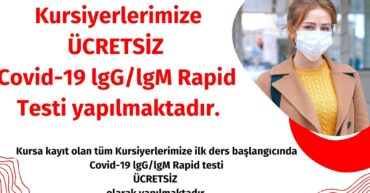 Kursa kayıt olan tüm Kursiyerlerimize ilk ders başlangıcında Covid-19 lgG/lgM Rapid testi ÜCRETSİZ olarak yapılmaktadır.